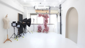 日中に自然光が入り続ける明るいスタジオです。無料貸出な撮影機材が好評。