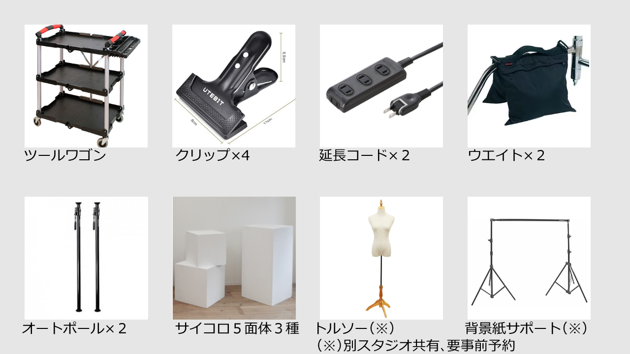スタジオ、機材の使い方、背景紙の設置にお困りの際は事前にお申込みください。
